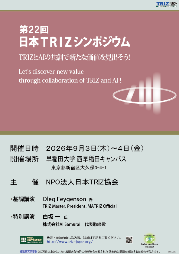 ・「第22回日本TRIZシンポジウム2026」発表募集のご案内